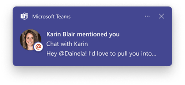 En av de første tingene som lyser opp Teams-opplevelsen vår, er muligheten til å se meldingsforhåndsvisninger direkte i varsler — enten de kommer fra kanaler, omtaler eller til og med reaksjoner.
