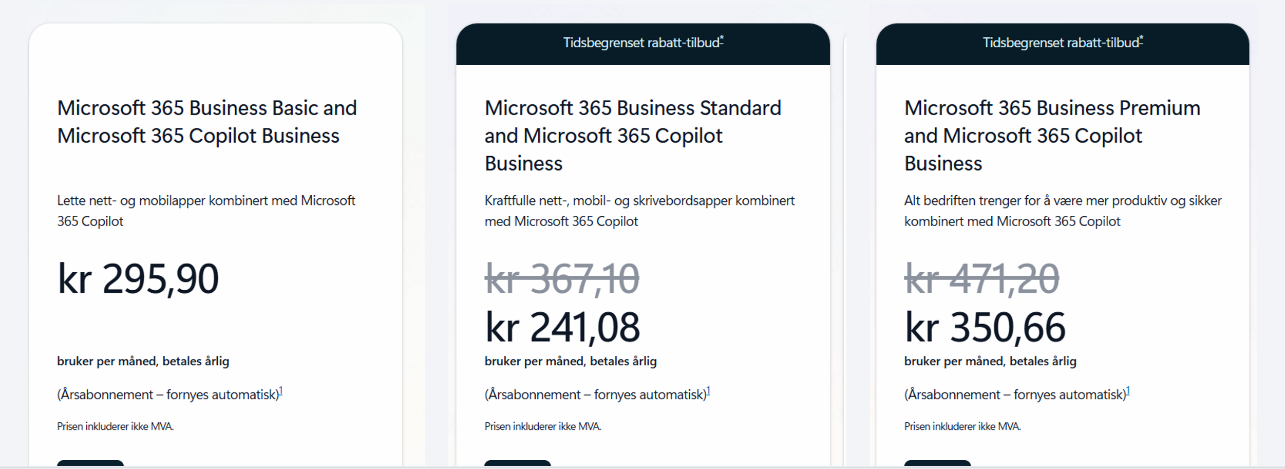 Microsoft pakker den nye Copilot Business sammen med populære Microsoft 365-lisenser, som Business Basic og Business Standard, og tilbyr rabatter når de kjøpes sammen. For eksempel kan Business Premium som følger med Copilot koste 242 NOK/måned — en betydelig besparelse sammenlignet med å kjøpe lisenser separat. Å betale på forhånd gir også en liten rabatt, men krever nøye planlegging for å unngå administrative problemer.