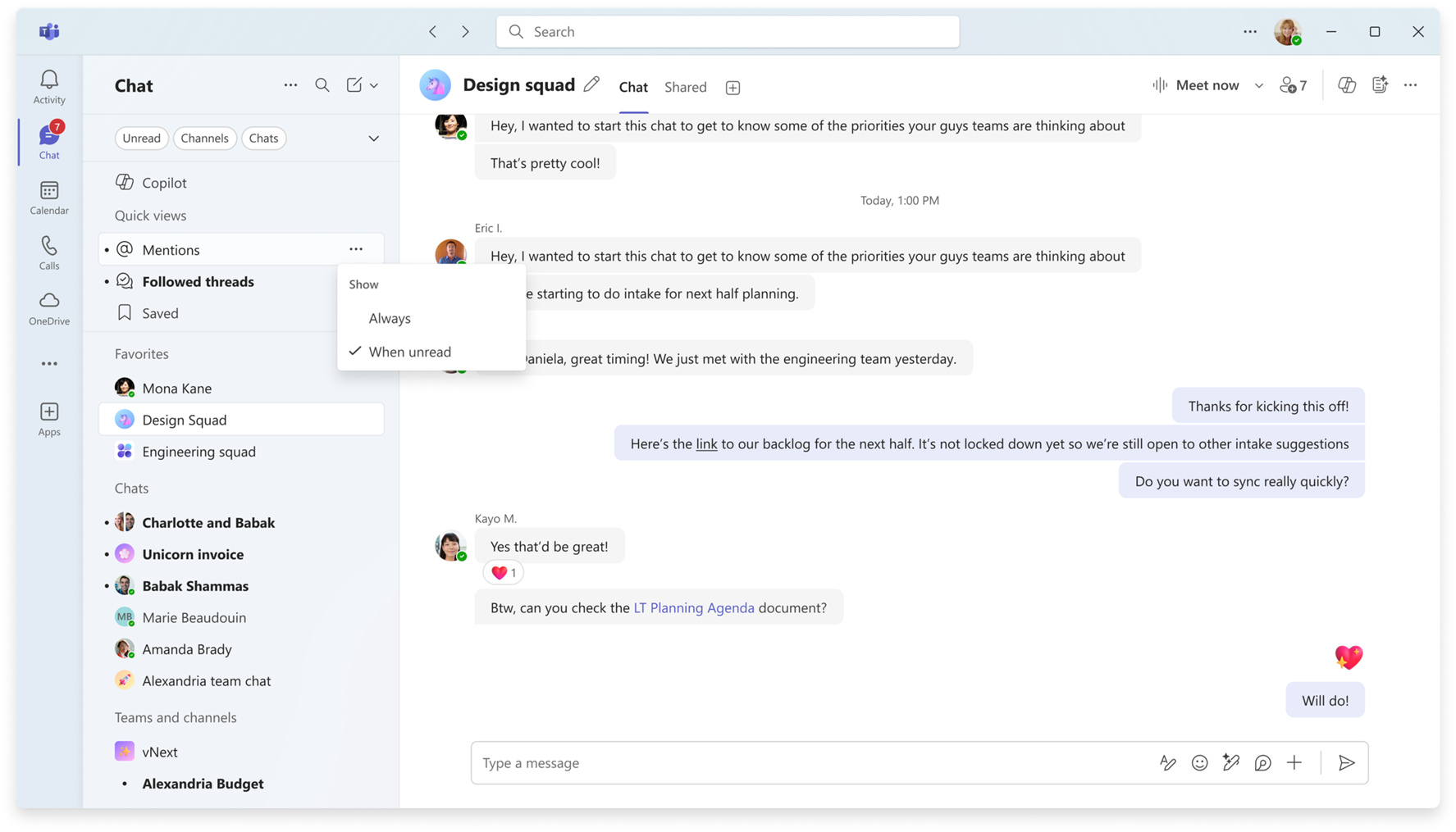 Teams kan bli overveldende med chatter, meldinger og varsler. For å motvirke dette lar en ny funksjon deg filtrere meldinger du er tagget i. Du kan velge å se alle taggede meldinger eller bare de du ikke har lest ennå.