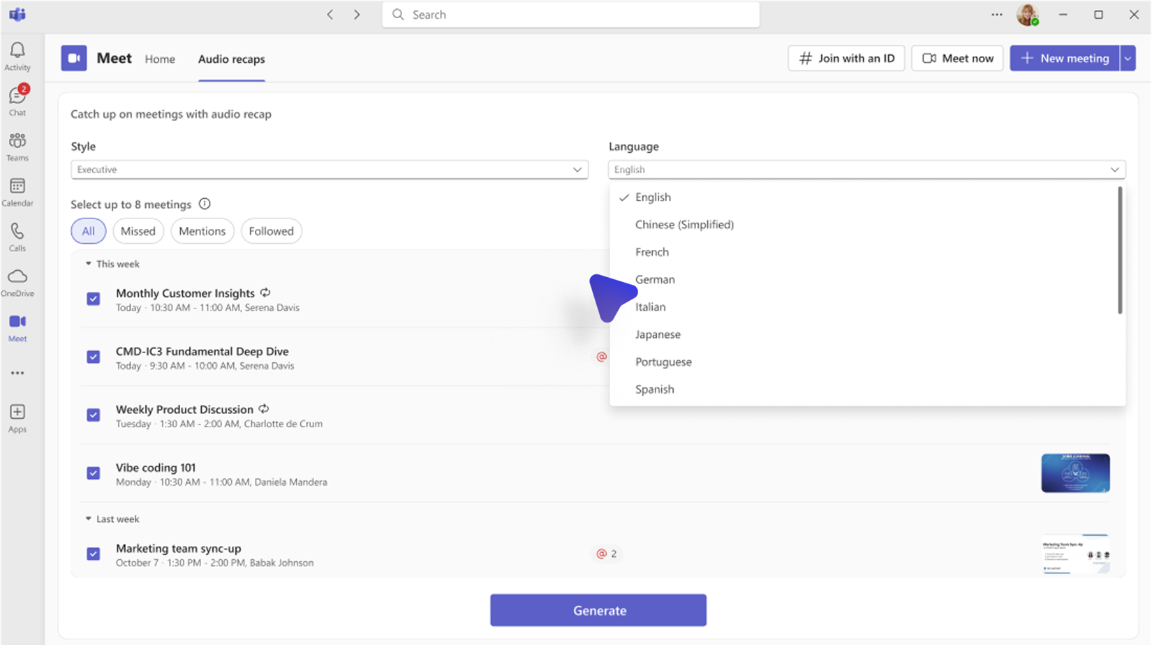 Tenk deg å få et podkastaktig lydsammendrag av Teams-møtene dine – perfekt for å lytte på farten, for eksempel når du kjører. Denne funksjonen har utvidet støtten til åtte flere språk (selv om norsk ennå ikke er inkludert).