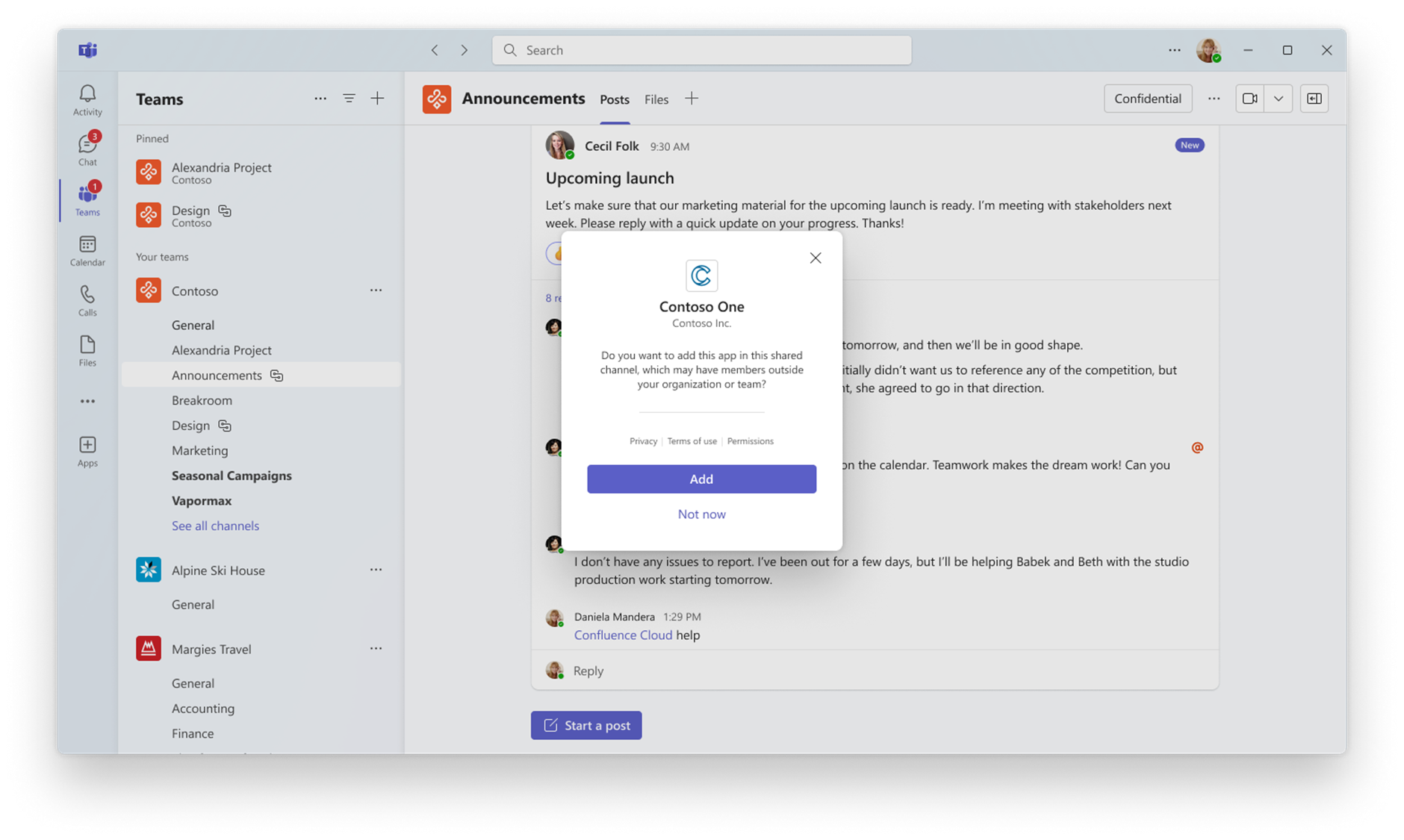 Det er nå mulig å legge til apper, botter, faner og meldingsutvidelser direkte i delte kanaler. Dette åpner for rikere og mer effektivt samarbeid på tvers av organisasjoner og team. Kristian poengterte at dette er spesielt nyttig for samarbeid i prosjektgrupper hvor man ofte deler informasjon og jobber tett sammen.