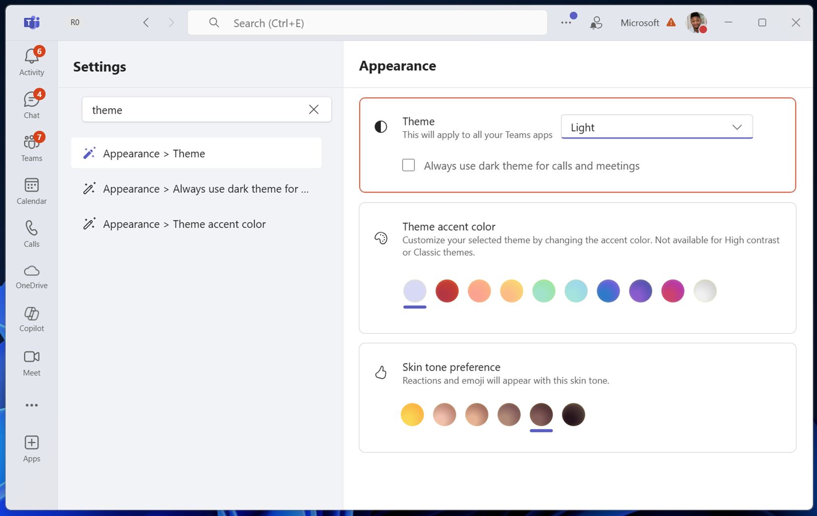 En mindre, men svært nyttig funksjon er at du nå kan søke etter innstillinger i Teams. Dette gjør det enklere å finne fram til funksjoner som dark mode eller andre tilpasninger uten å måtte lete gjennom mange undermenyer. For mange har det tidligere vært utfordrende å finne frem til akkurat de innstillingene man ønsker å endre, så dette er et kjærkomment tillegg.