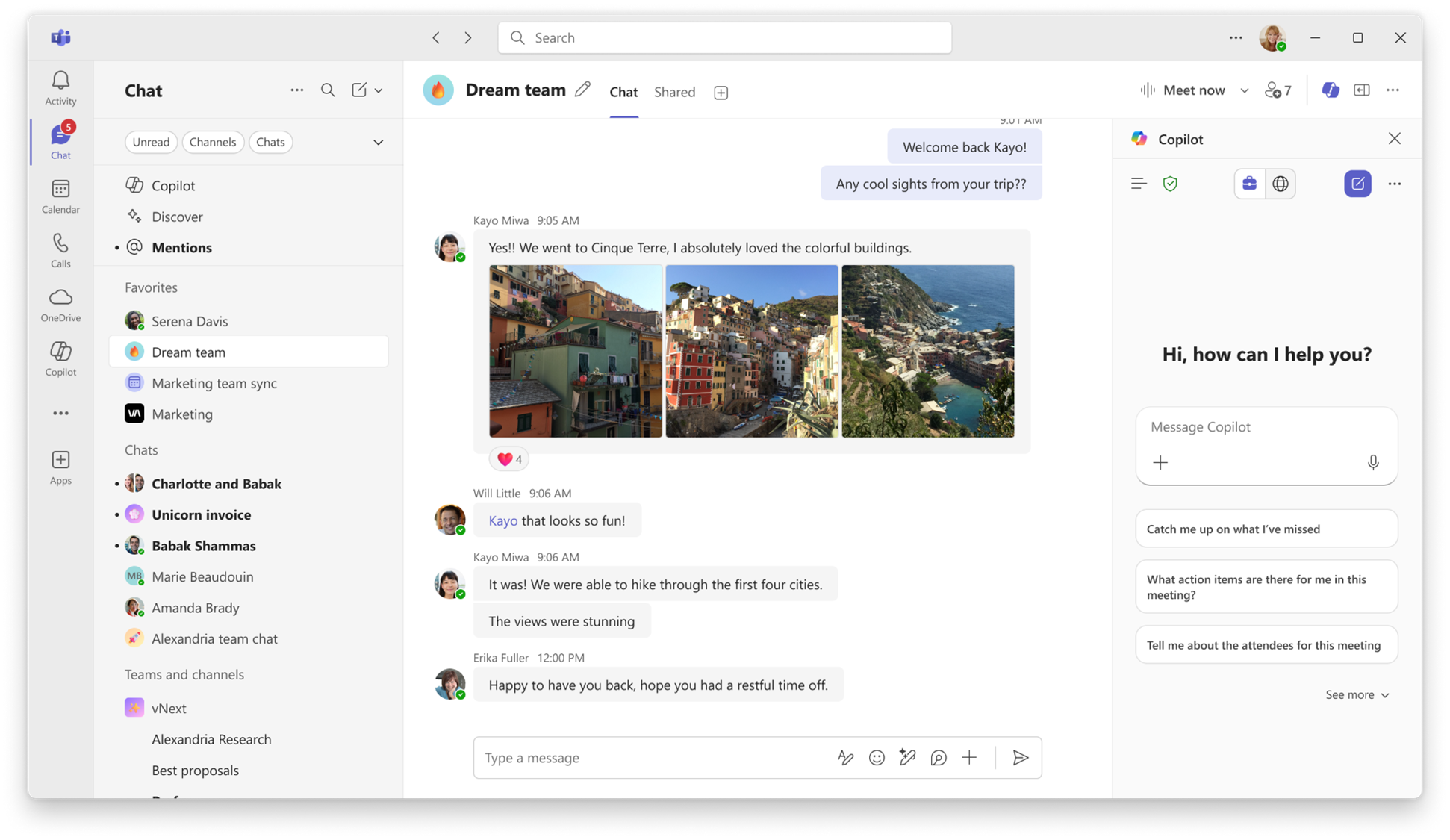 Copilot er nå integrert som en fast side i Teams for chat, kanaler, anrop og møter, noe som gir enklere tilgang til AI-assistanse.
