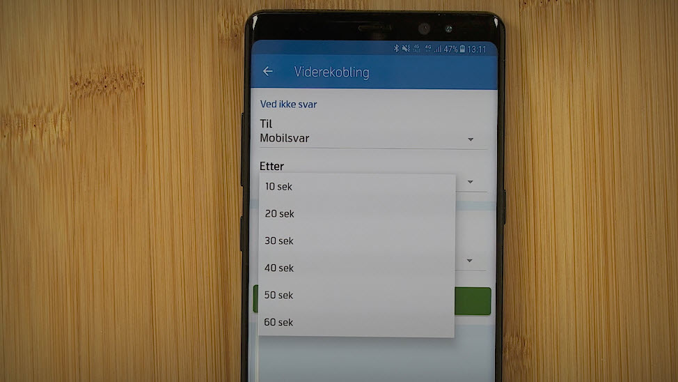 Du har også mulighet til å velge hvor mange sekunder det skal gå før løsningen viderekobler samtalen.