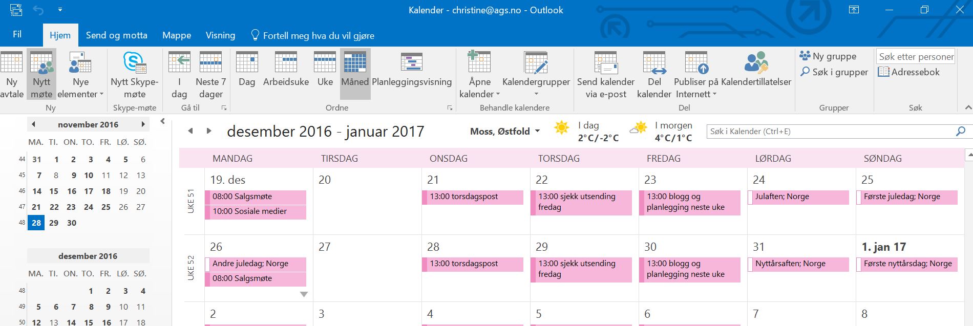 - Du kan nå sjekke om kalenderen din er blitt oppdatert med dine valgte fri- og helligdager. I vårt tilfelle Julen 2016.