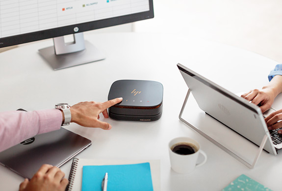Få møtene unna på en kjapp og grei måte med HP Elite Slice. Den er bygget spesielt for møterom og med den integrerte konferanseløsningen passer den godt for fremtidens kontorer. Slicen er enkel, sikker og lett administrert med sin kombinasjon av ettrykkskontroller, Skype for Business™ og Intel® Unite™ trådløs deling. Bruk den som en kommunikasjonshub for samarbeid eller som en PC eller telefon med samarbeidstoppdekslet og presisjonslyd fra Bang & Olufsen-lydmodulen. Kommer med 360° omsluttende lyd fra HP Audio-modulen som har forsterkning med HP Audio Boost og støykansellering med HP Noise Cancellation-programvaren. Den har også dobbel mikrofon-matrise med en rekkevidde på 5 meter. Det har sjelden vært så enkelt å føre et møte over Skype som nå!