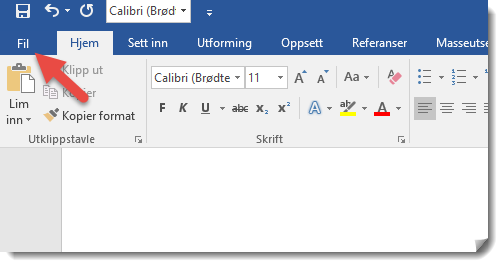 I dette eksemplet viser vi deg hvordan du passord beskytter et Word dokument. Enten du lager et helt nytt dokument eller du vil passord beskytte et eksisterende dokument velger du <fil> menyen i Word. (fungere også i Excel og PowerPoint)
