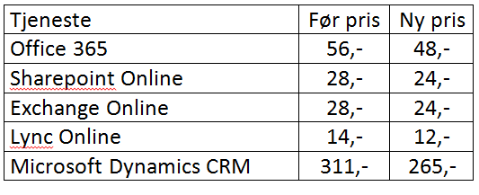 Det har aldri vært billigere for deg å ta skrittet ut og velge nettskyen fremfor å investere i dyre servere og lisenser. For alle eksisterende kunder på Office 365 , Microsoft Office og CRM er dette også gode nyheter nå når prisene på tjenestene blir billigere.
