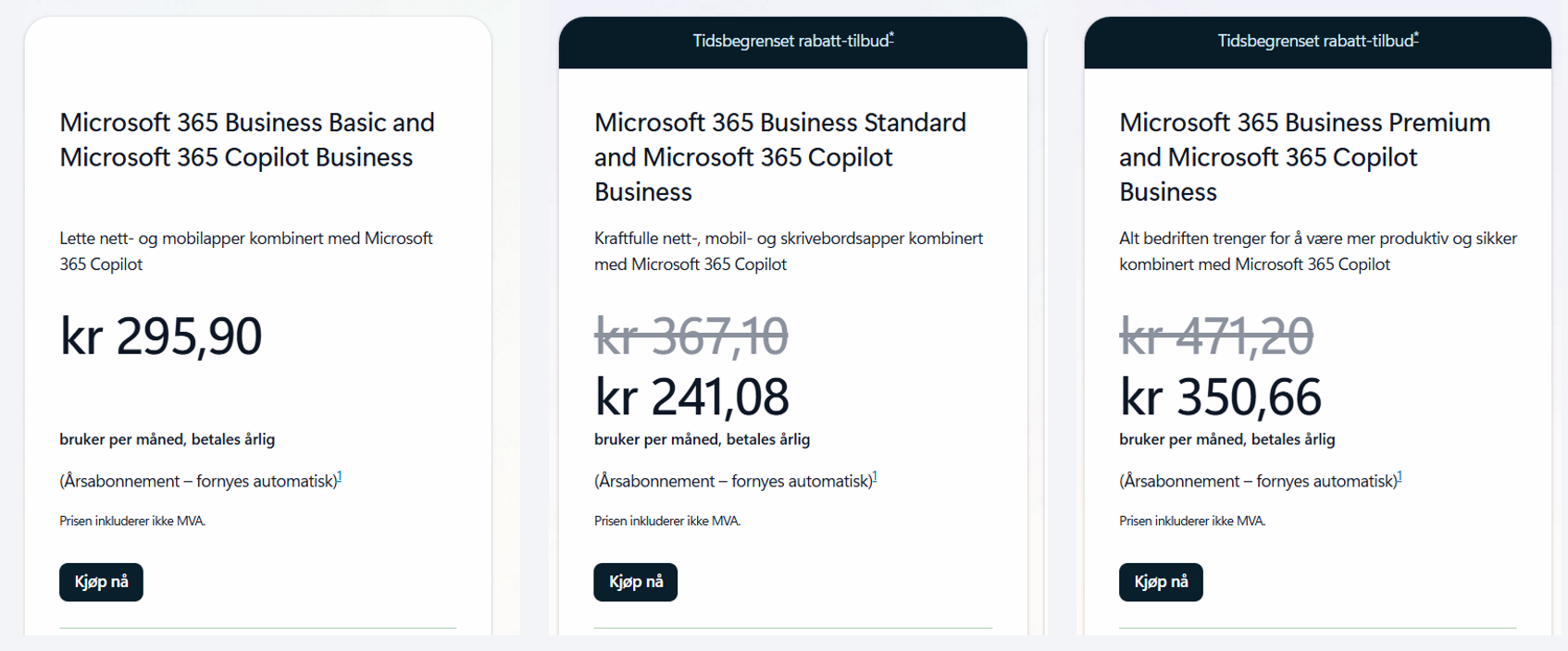 - Business Standard + Copilot Business: 241,- kr og mye bedre besparelser her.