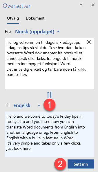 Word automatisk sette inn den oversatte teksten for deg.