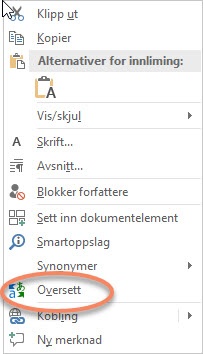 Du kan også starte oversettelsesfunksjonen ved å høyreklikke og velge den på menyen her.