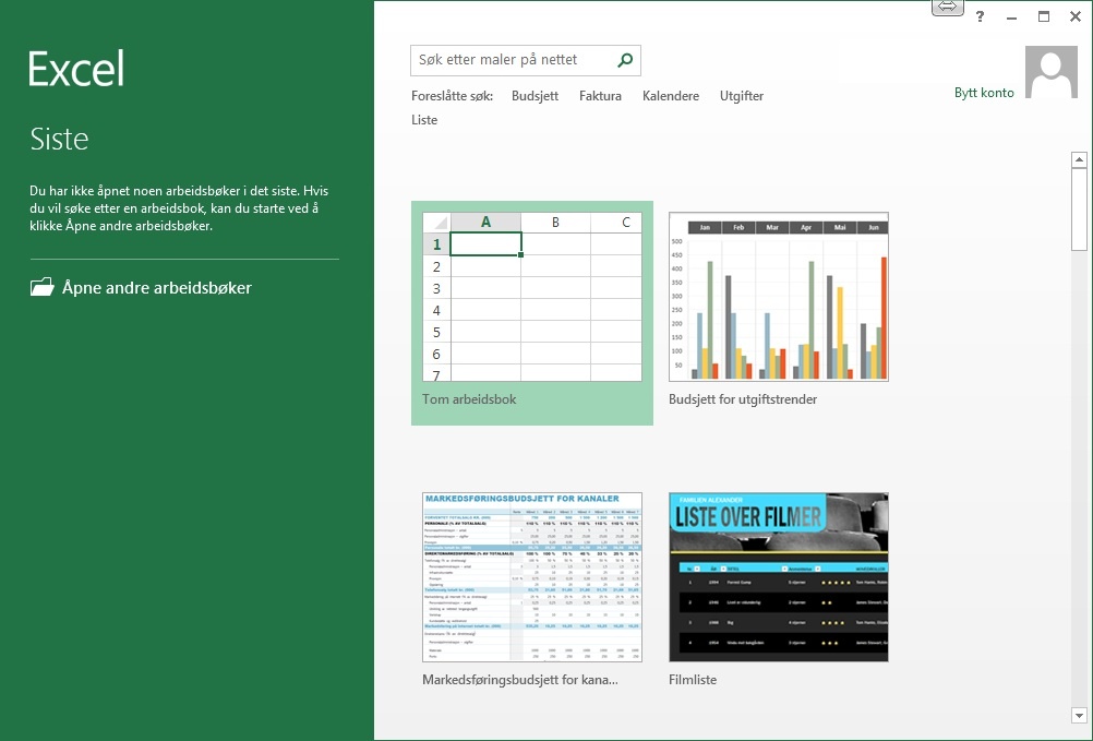 Flatt og minimalistisk og med fokus på det du skal jobbe med. Du ser det allerede på de nye startskjermene til applikasjonene. Her er det enkelt å komme i gang, du har mange flotte maler å starte med enten du skal bruke excel, word eller lage en presentasjon i powerpoint.