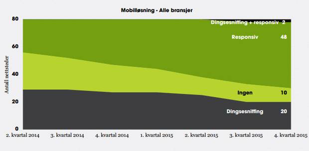 En undersøkelsen gjort av Netlife Research viser at de aller fleste nå går mot responsivt design. Dette gjelder de som nylig har kommet med mobiltilpassede nettsider, og nettsteder som har gjort en større redesign.