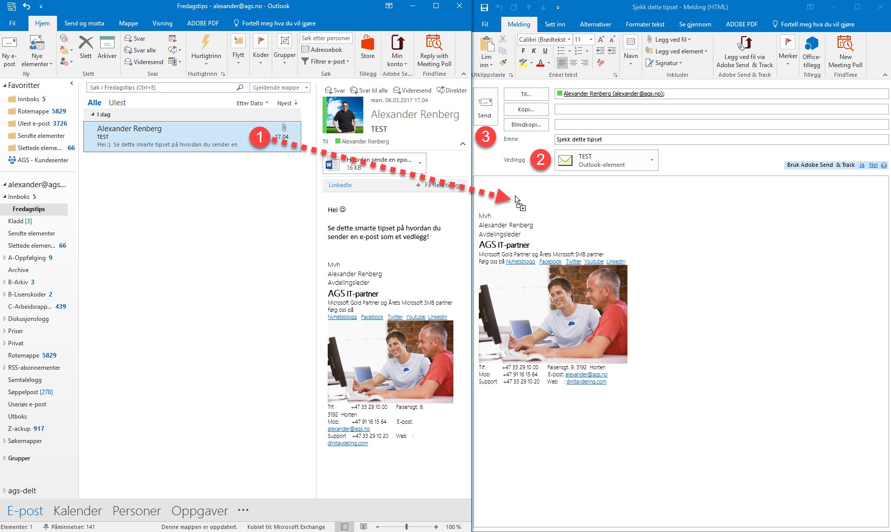 - Nå kan du bare trykke på <SEND> og du har sendt e-post som vedlegg i en ny e-post.