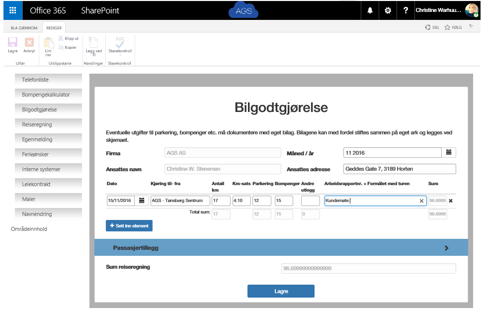 Forrige uke presenterte vi vår supre feriemodul i SharePoint. I dag skal vi se mer på modulen for Reiseregning og Bilgodtgjørelse. Er du en av de som bruker regneark eller papirskjemaer for å fylle ut Reiseregninger eller skjemaer for Bilgodtgjørelse i bedriften? Da bør du definitivt lese videre! Hos AGS IT-partner bruker vi modulene i SharePoint til å rive oss bort fra papirflyten.