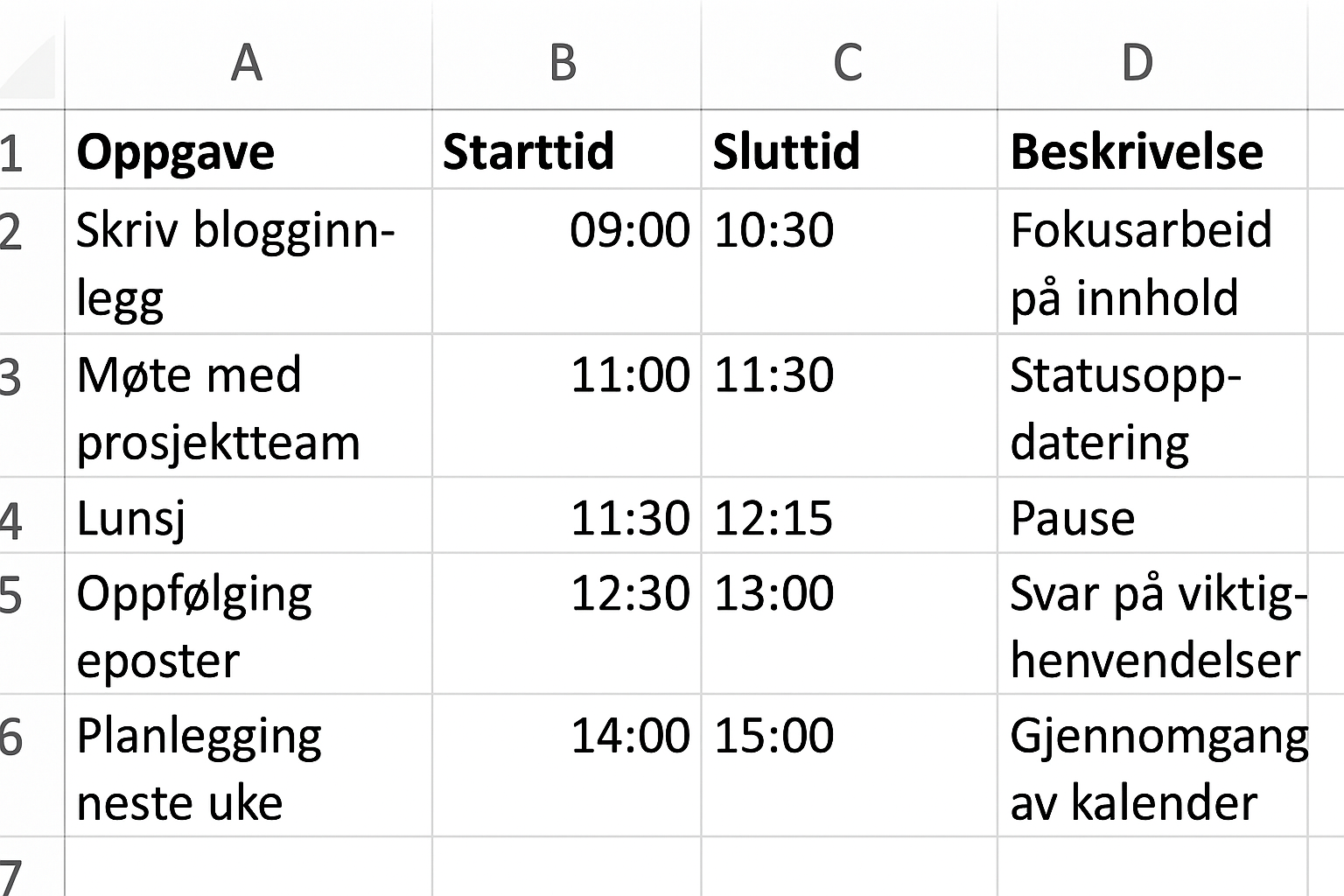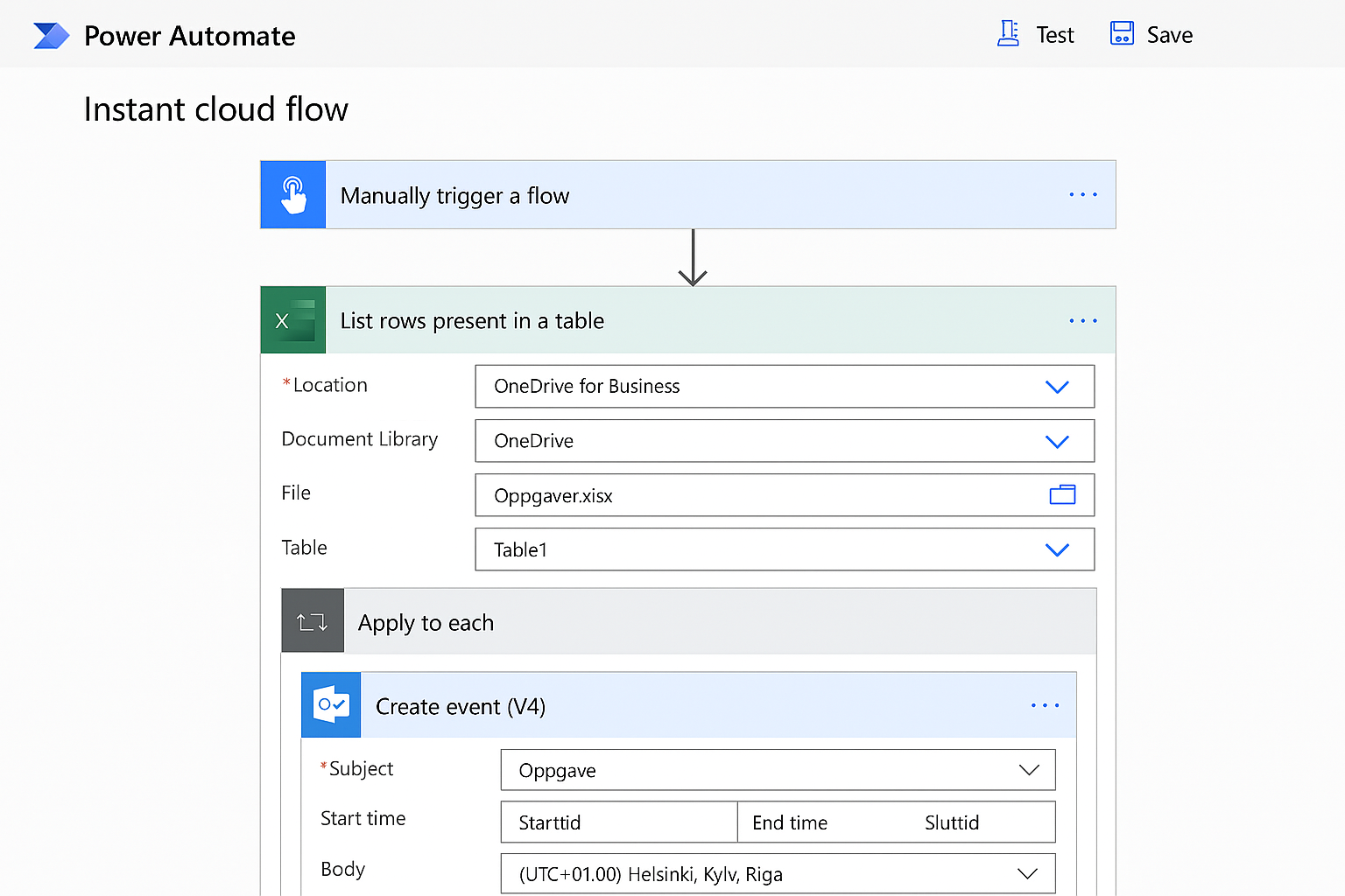 Vil du prøve selv? Start med å lage en enkel Excel-liste med dine oppgaver og tidsblokker, og bygg din første Power Automate-flow . Det er enklere enn du tror!