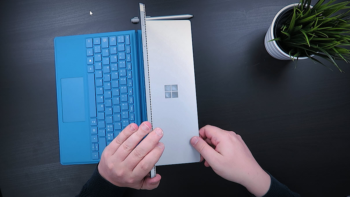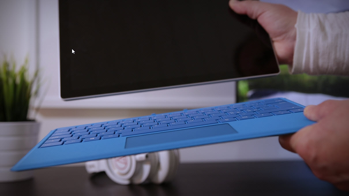 Tastaturet er avtakbart og har en smart magnetisk tilkobling som du ser her. Det gjør det enkelt å koble fra tastaturet når du skal bruke maskinen i nettbrettmodus. Og like genialt når du trenger å koble på tastaturet igjen.
